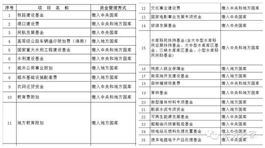 2014年10月29日,财政部官网公布《全国性及中央部门和单位行政事业性收费目录清单》、《全国性及中央部门和单位涉企行政事业性收费目录清单》和《全国政府性基金目录清单》,图为《全国政府性基金目录清单》截图。