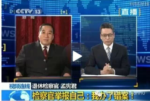 他叫孟宪君,他曾是安徽省淮北市的一名检察官,他也曾是昨天这起案件一审、二审时的公诉人,但最重要的,是他曾到最高人民检察院举报自己,说自己在该案审理时办错案了。(2014年11月22日央视)