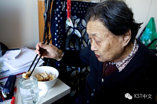 高耀洁吃不惯美国食物,一吃就腹泻。她的胃曾切除了四分之三。为了图方便,她把面包圈撕成拇指大的碎片沾白开水,就是一顿午饭。