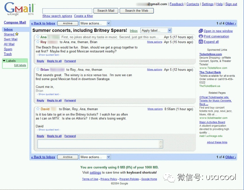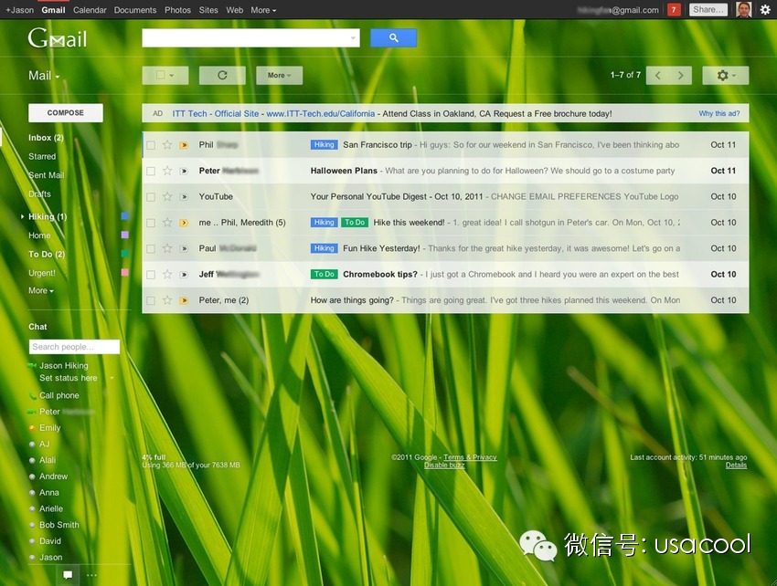 2011年,Gmail的用户界面有了巨大的进步,可以选择主题,在对话中可以看到附件中的图片