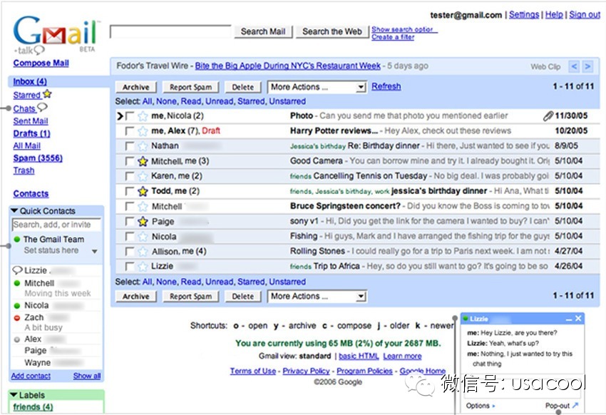 2006年,Gmail有了独立域名、聊天、以及日历功能。