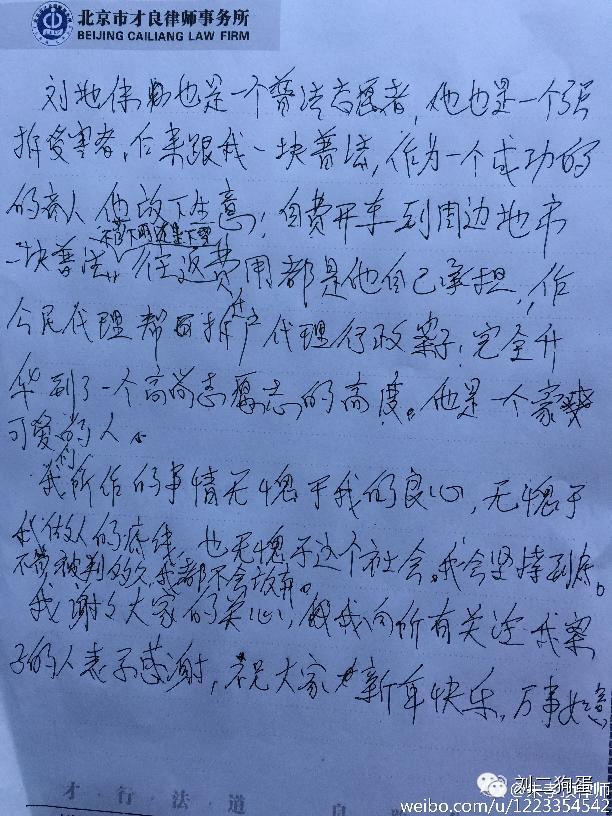 【贾灵敏狱中新年寄语:无愧于心必坚持到底!】2014年的最后一天下午,我去郑州三看看望贾老师。“我所做的事情无愧于我的良心,无愧于我做人的底线,也无愧于这个社会。不管被判多久,我都不会放弃,我会坚持到底!我谢谢大家的关心,向所有关注我的案子的人表示感谢!祝大家新年快乐,万事如意!”