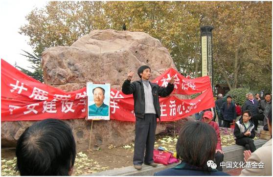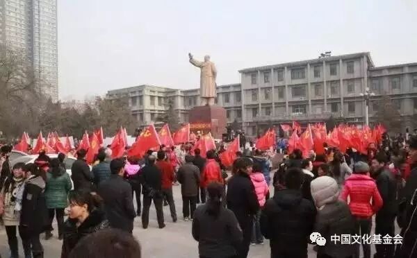 在中国的老工业城市,尤其是北方老工业城市,他们甚至已成为固定一景:广场或公园的某个角落,一群上了年纪的他们,或在红歌声中手持红宝书念念有词、大跳忠字舞,或站在红色横幅下,集体聆听激情澎湃的演讲。在反日保钓之类的游行中,偶尔也会见到高举的毛泽东像下的他们。
