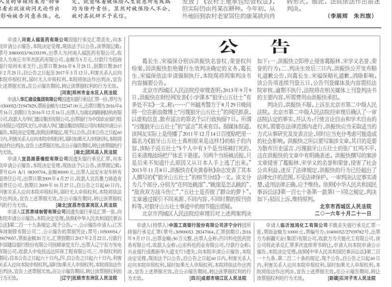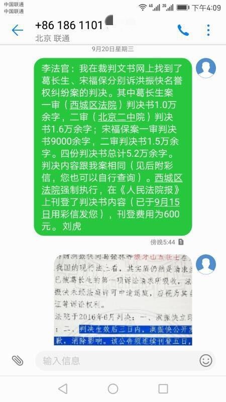 李欣法官给我主要说了三点:①洪振快案是西城区法院,本案,他们是海淀区法院,是按照生效法律文书来执行的;②洪振快案法院登的是《公告》,本案是要“刊登本判决的主要内容”,并非《公告》,所要支出的费用不可比。