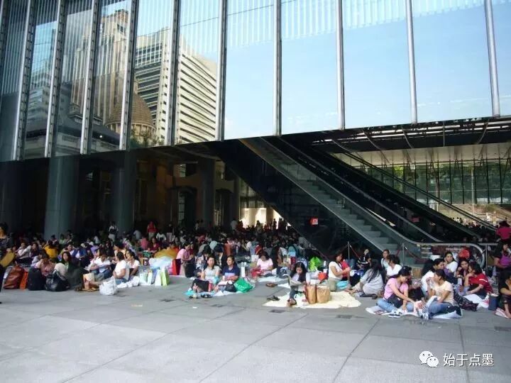 香港汇丰银行穿堂开放给外籍帮佣休假聚会