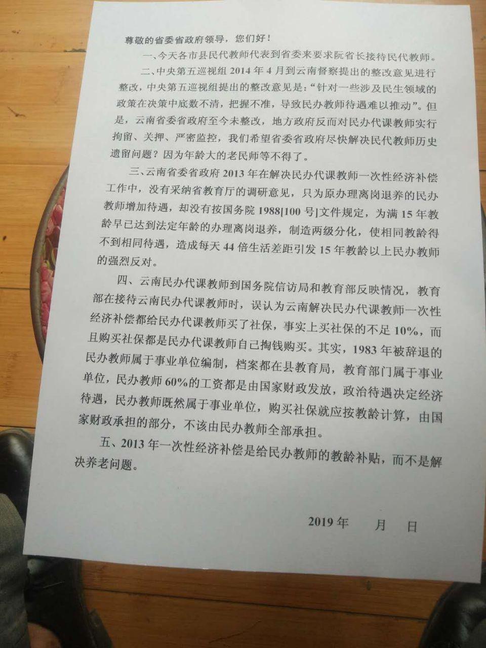 经推选,曲靖市的何德明、昆明市的杨懋、李天粉、昭通市的杨韩清和红河州的何保华五位老师为维权“谈判”代表。