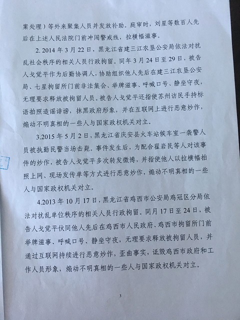 检方指戈觉平纠集一些人去参与鸡西营救唐吉田等维权活动。律师指出,这样的维权活动自发的,戈觉平也并非是发起者,许许多多人也参与了转帖。戈觉平的一名辩护律师说,自己也转发过有关“建三江”的帖子。检方指戈觉平称律师被打断20多根肋骨是谣言。律师当庭指出,这不是谣言。被打断肋骨的律师们恰好是辩护律师的朋友,律师了解这一情况。