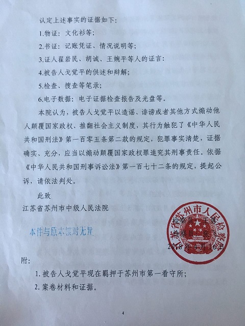 附:1.被告人戈觉平现在羁押于苏州市第一看守所;2.案卷材料和证据。