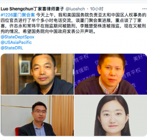 中国公民运动网2021年2月20日报道:今天上午,丁家喜的辩护律师彭剑和许志永的辩护律师梁小军分别接到临沂市检察院的电话通知,丁家喜案、许志永案审查起诉期限延长15天。 遭受酷刑 12·26公民案发生13个月后, 2021年1月23日丁家喜和许志永的辩护律师才 … 继续阅读 12·26公民案:许志永、丁家喜被延长审查起诉15天